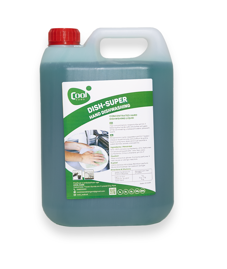 Përqendrimi i lartë; respekton pH 5.5–7, duke i mbajtur duart të buta; emulsifikon të gjitha llojet e yndyrave, duke eliminuar aromat e pakëndshme; aromë e këndshme.